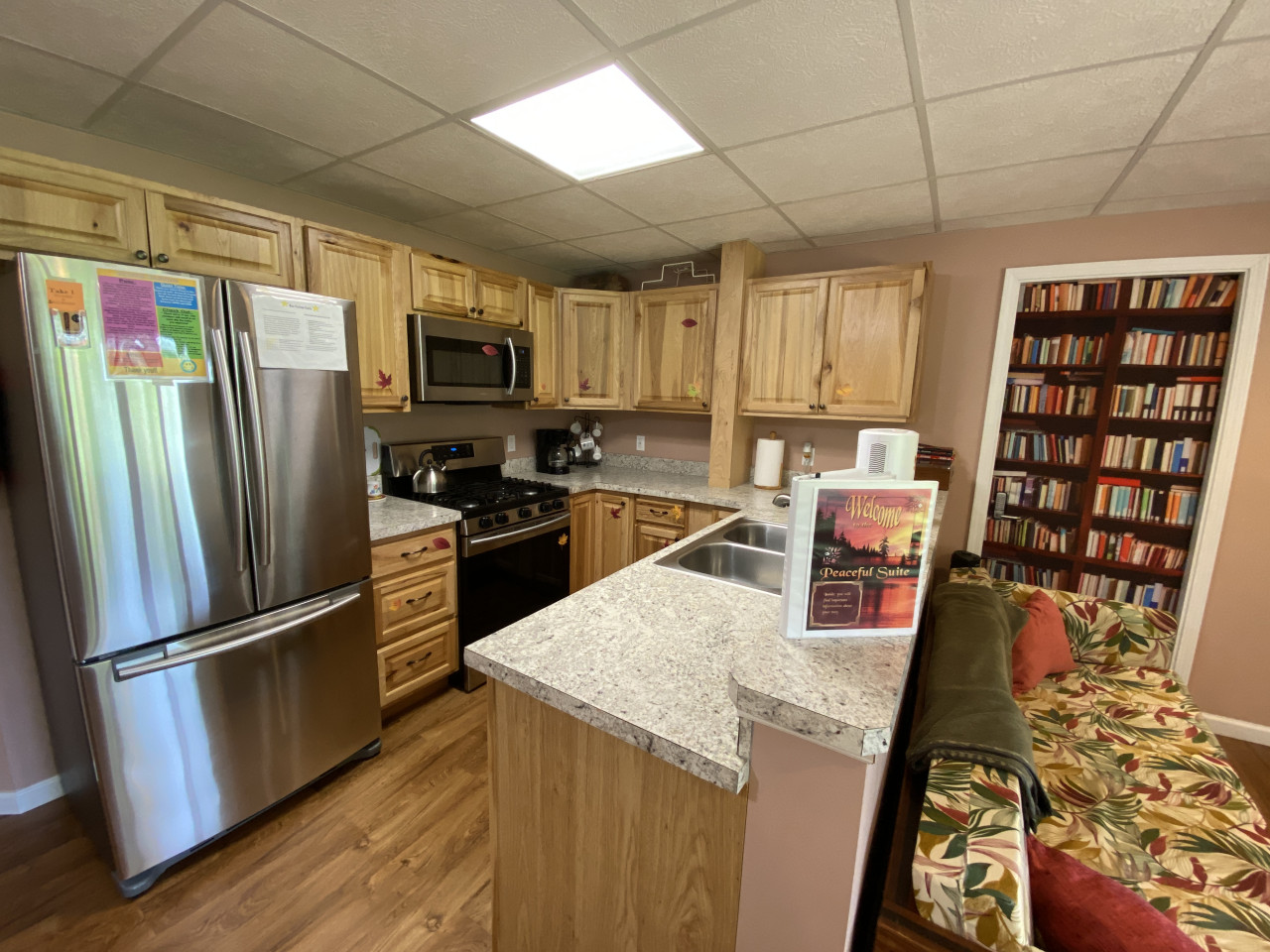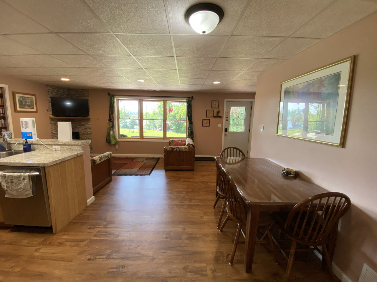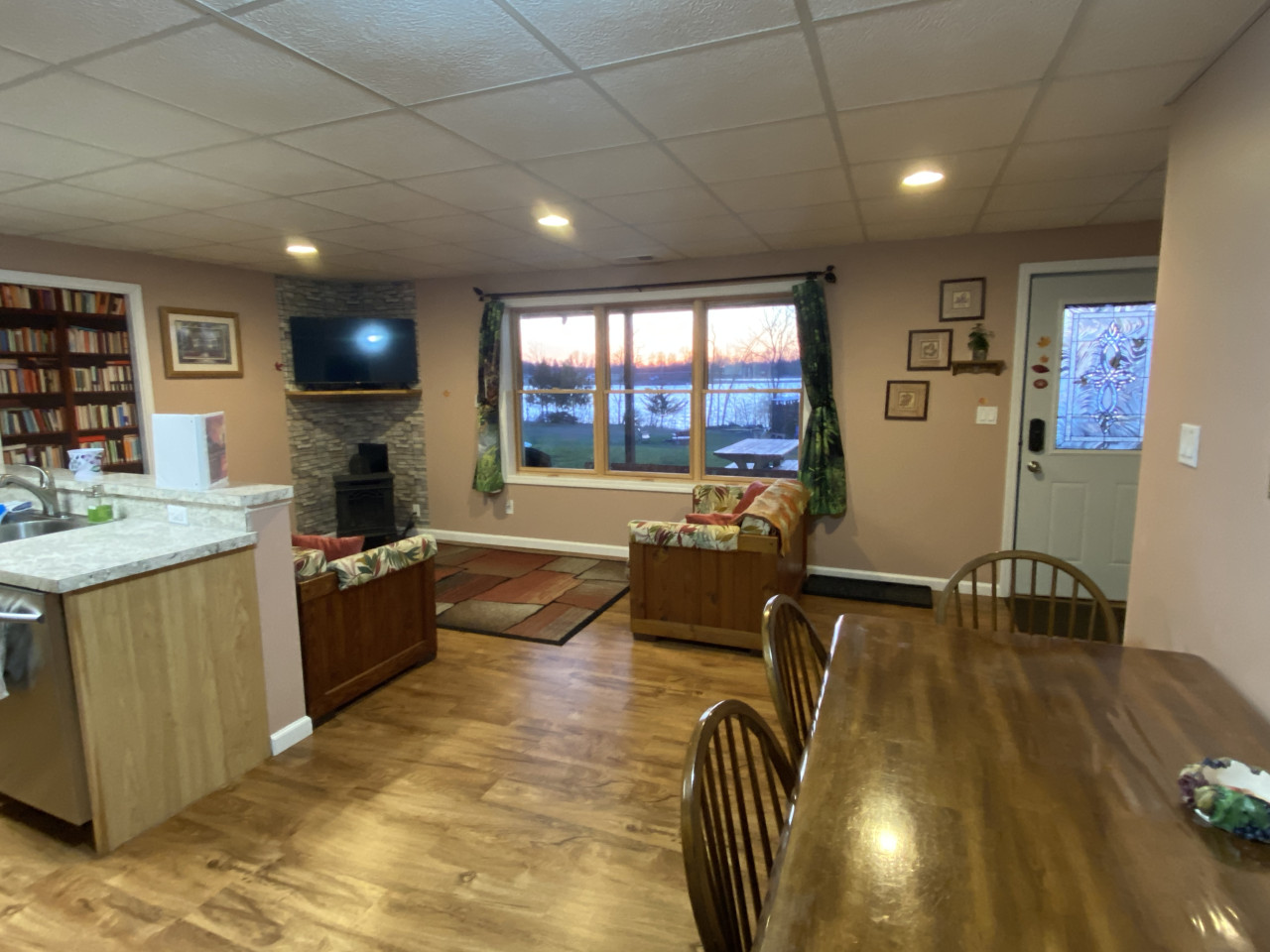 / nightHidden Charm Suites is proud to offer the Peaceful Suite. Welcome to our beautiful, smoke-free lakefront home! Nestled on one acre on a serene, private, all-sports lake surrounded by woods, our 2-bedroom apartment in the walk-out basement offers a peaceful escape from everyday life. Your Space: You get this entire private apartment, not the entire house. Owners live upstairs, and guests rent the 2 apartments in the walkout basement. Cozy 2-bedroom apartment, fully equipped with just about everything you need. Private entrance with an electronic lock A well-equipped kitchen includes all new appliances, cookware, and essentials. A full-size washer and dryer for your convenience (please bring laundry supplies). Sleeps up to 6 with 2 queen beds, a couch (not a pullout), and a single size cot Free on-site parking for up to 2 vehicles. Pets are welcome. Please review household rules. Outdoor Fun: Experience the beauty of nature in every season. Swim in the summer, kayak in the spring, summer, and fall, and build snowmen in our winter wonderland. We have a fire pit for bonfires year-round—perfect for roasting marshmallows and sharing stories under the stars. Our natural shoreline on the living lake features a dock with a kayak launch, and we have 3 kayaks, and inflatable tube rentals available. Relax on the dock, watching stunning sunsets and listening to the sounds of nature, while the gentle lake breeze soothes your spirit. Our quiet community ensures a peaceful stay, with plenty of opportunities to connect with nature. Convenient Location: We’re ideally located with shopping, parks, and eateries nearby, and just 10-30 minutes from Frankenmuth, Birch Run, and Flint. Perfect for both short stays and longer monthly rentals. Friendly Hosts: We’re a welcoming family of three that respect your privacy while being available for any assistance you may need. If you have questions after reading the information here, contact Lisa 810/441/8803. Check out our outstanding reviews across our other locations! We can’t wait to welcome you to your peaceful lakeside retreat at Hidden Charm Suites! Welcome to the Peaceful Suite by Hidden Charm Suites. We are happy to have you here and hope you enjoy your stay. If you notice anything that needs improvement, please let us know. Our goal is for you to feel welcome, relaxed, comfortable, and glad you stayed with us. House Rules & Important Info (With a Dash of Sass) ✨ ****Let’s start with a short list of rules:**** ✨ 🚭 Smoke-Free = Fresh & Fabulous We love our house smelling like fresh air. No smoking, no vaping, no exceptions—in or near the house. If you're craving a puff, head to the cute little smoker’s corner near the parking spots. Use the butt bucket for your butts and the trash cans for, well… trash. Pro tip: Give yourself a minute or two to air out before coming back inside—the smell clings like glitter at a craft fair. No incense, no overpowering scents, and absolutely no cooking seafood inside. (Grill it outside like a pro.) $250 cleaning fee for violations. 🤫 Quiet Hours = Happy Neighbors Others live here as well, so please keep things respectful. Quiet hours are from 10 PM to 8 AM. We're not asking for complete silence—just don’t be that guest. 😄 🚽 Toilet Talk (Yeah, We Went There) This one's not glamorous, but it’s super important: ONLY flush toilet paper and tissue. That’s it. No wipes, no feminine products, no cotton swabs, no mystery items, even if it says flushable. If it’s not pee, poo, or tissue —trash it. Backed-up sewer = plumber call = extra charge = total buzzkill. 💩 🧼 Long Stays = Deep Clean Time Staying 28+ days? We’ll need to give the place a deeper scrub post-checkout. An additional cleaning fee will be added, payable through your guest portal. 🔐 Owner-Only Items If it's labeled “Owner Use Only,” please admire it from a distance. Using these items may result in extra charges. Thanks for respecting our space! ❌ Cancellations & Refunds Life happens—travel insurance is your best friend. Our cancellation policies are firm and enforced. A 10% processing fee applies to all cancellations/refunds (unless Airbnb rules apply). 🔑 Your Very Own Guest Portal For each reservation, we’ll set up a personalized Guest Portal with everything you need for a smooth stay. Inside, you’ll find a check-in form and rental agreement—these must be completed before we can send over your arrival instructions. You’ll also get all the key details about your stay, along with some fun add-ons you can purchase to make your visit even more fabulous. 💧 Dehumidifier Duty It’s the quiet hero of humidity control. Leave it running, let the little tube drain into the sink, and everyone stays comfy. 🐶 Pet Rules Yes, we’re pet-friendly—with a few rules: • There is a fee for up to 2 pets. Extra pets need approval (+$25 each). • No leaving pets alone unless you’ve gotten a pre-approved hall pass. • Use provided covers if pets are on furniture. • Leashes are strongly recommended—other dogs may be around and may not interact well. • Wet dogs = bathe + dry WELL before coming inside. • Clean up ALL pet messes (inside & out). • No poo left behind! Seriously, scoop that poop. Nobody likes a landmine. 🚗 Parking Details Free on-site parking in spots #2 & #3. Easy-peasy. ✨**** And now some details to make your stay even better **** 😉: 🌊 Lake Life & Fire Pit Fun Our lake is a living lake with a natural shoreline. This means that there are plants and animals in the water, and there is no beach. You are welcome to swim. I prefer to paddle around the lake. 😊 • All lake fun is at your own risk; there is no lifeguard on duty. We are not responsible for injury or lost/damaged property. • I never thought I would need to say this, but Watch Your Kids! We want everyone to be safe and happy. • Dock: Guests are welcome to use the dock. The water is about 5 feet deep off the