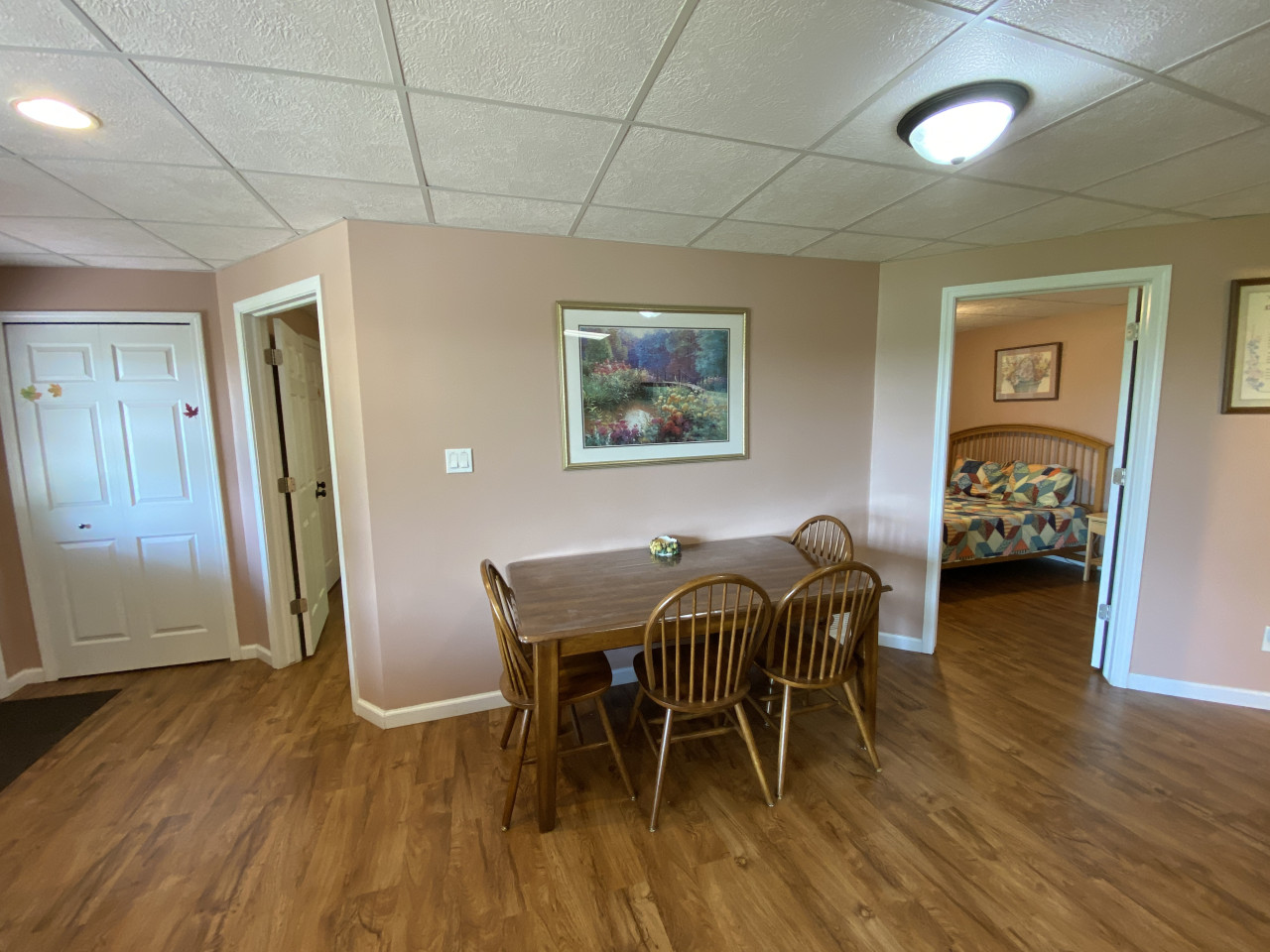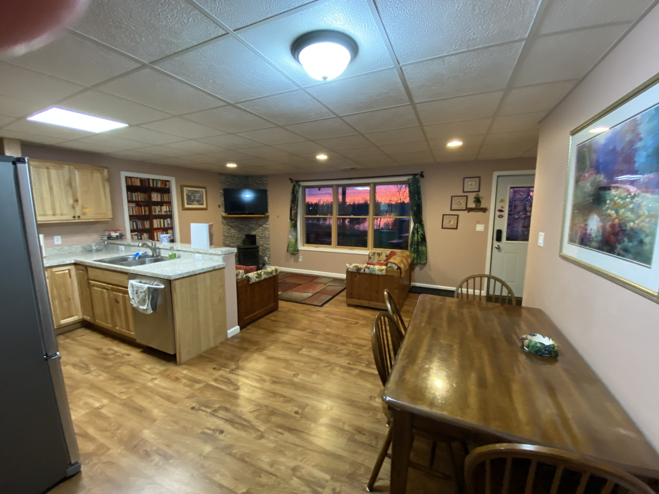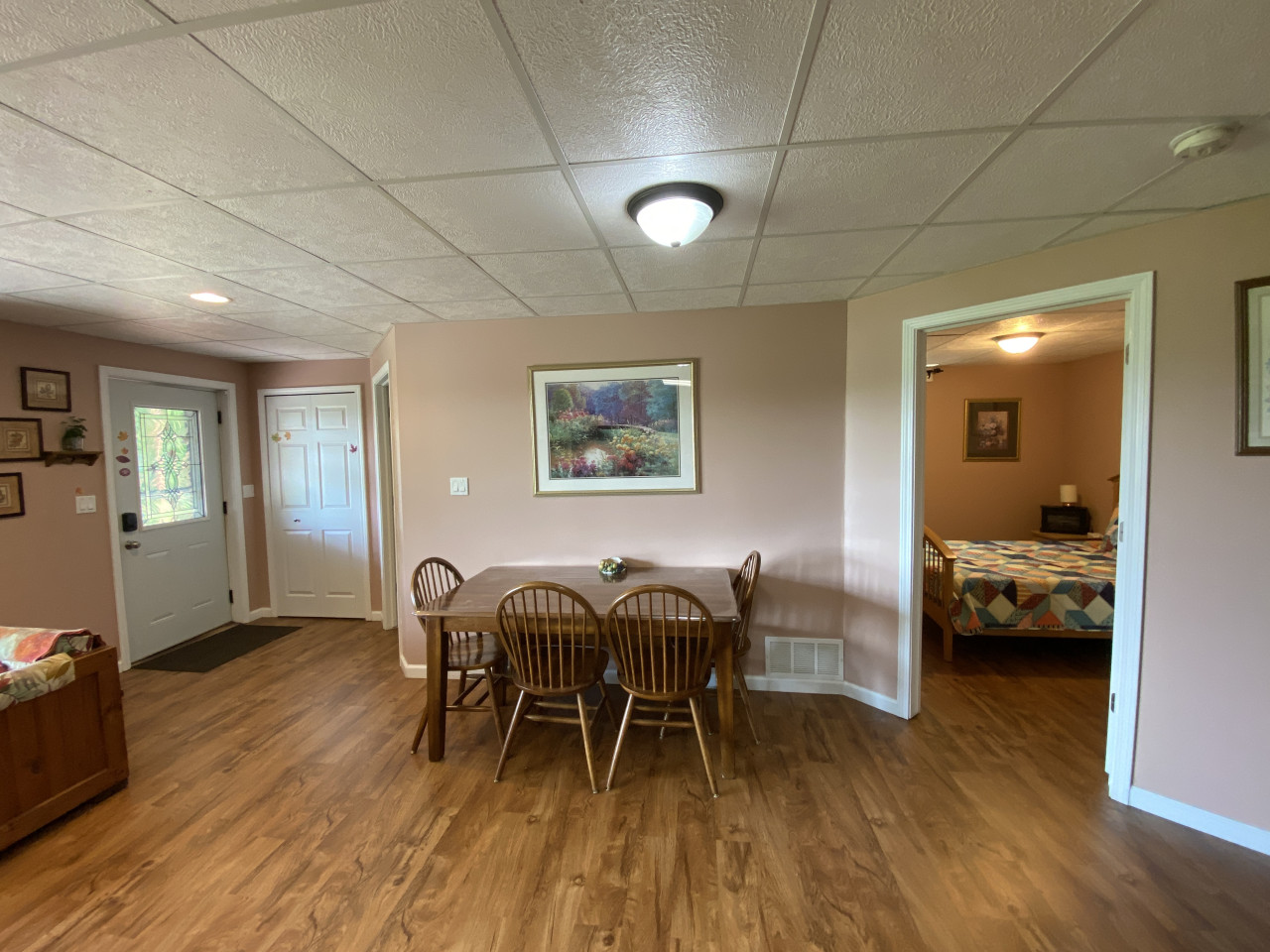 / nightHidden Charm Suites is proud to offer the Peaceful Suite. Welcome to our beautiful, smoke-free lakefront home! Nestled on one acre on a serene, private, all-sports lake surrounded by woods, our 2-bedroom apartment in the walk-out basement offers a peaceful escape from everyday life. Your Space: You get this entire private apartment, not the entire house. Owners live upstairs, and guests rent the 2 apartments in the walkout basement. Cozy 2-bedroom apartment, fully equipped with just about everything you need. Private entrance with an electronic lock A well-equipped kitchen includes all new appliances, cookware, and essentials. A full-size washer and dryer for your convenience (please bring laundry supplies). Sleeps up to 6 with 2 queen beds, a couch (not a pullout), and a single size cot Free on-site parking for up to 2 vehicles. Pets are welcome. Please review household rules. Outdoor Fun: Experience the beauty of nature in every season. Swim in the summer, kayak in the spring, summer, and fall, and build snowmen in our winter wonderland. We have a fire pit for bonfires year-round—perfect for roasting marshmallows and sharing stories under the stars. Our natural shoreline on the living lake features a dock with a kayak launch, and we have 3 kayaks, and inflatable tube rentals available. Relax on the dock, watching stunning sunsets and listening to the sounds of nature, while the gentle lake breeze soothes your spirit. Our quiet community ensures a peaceful stay, with plenty of opportunities to connect with nature. Convenient Location: We’re ideally located with shopping, parks, and eateries nearby, and just 10-30 minutes from Frankenmuth, Birch Run, and Flint. Perfect for both short stays and longer monthly rentals. Friendly Hosts: We’re a welcoming family of three that respect your privacy while being available for any assistance you may need. If you have questions after reading the information here, contact Lisa 810/441/8803. Check out our outstanding reviews across our other locations! We can’t wait to welcome you to your peaceful lakeside retreat at Hidden Charm Suites! Welcome to the Peaceful Suite by Hidden Charm Suites. We are happy to have you here and hope you enjoy your stay. If you notice anything that needs improvement, please let us know. Our goal is for you to feel welcome, relaxed, comfortable, and glad you stayed with us. House Rules & Important Info (With a Dash of Sass) ✨ ****Let’s start with a short list of rules:**** ✨ 🚭 Smoke-Free = Fresh & Fabulous We love our house smelling like fresh air. No smoking, no vaping, no exceptions—in or near the house. If you're craving a puff, head to the cute little smoker’s corner near the parking spots. Use the butt bucket for your butts and the trash cans for, well… trash. Pro tip: Give yourself a minute or two to air out before coming back inside—the smell clings like glitter at a craft fair. No incense, no overpowering scents, and absolutely no cooking seafood inside. (Grill it outside like a pro.) $250 cleaning fee for violations. 🤫 Quiet Hours = Happy Neighbors Others live here as well, so please keep things respectful. Quiet hours are from 10 PM to 8 AM. We're not asking for complete silence—just don’t be that guest. 😄 🚽 Toilet Talk (Yeah, We Went There) This one's not glamorous, but it’s super important: ONLY flush toilet paper and tissue. That’s it. No wipes, no feminine products, no cotton swabs, no mystery items, even if it says flushable. If it’s not pee, poo, or tissue —trash it. Backed-up sewer = plumber call = extra charge = total buzzkill. 💩 🧼 Long Stays = Deep Clean Time Staying 28+ days? We’ll need to give the place a deeper scrub post-checkout. An additional cleaning fee will be added, payable through your guest portal. 🔐 Owner-Only Items If it's labeled “Owner Use Only,” please admire it from a distance. Using these items may result in extra charges. Thanks for respecting our space! ❌ Cancellations & Refunds Life happens—travel insurance is your best friend. Our cancellation policies are firm and enforced. A 10% processing fee applies to all cancellations/refunds (unless Airbnb rules apply). 🔑 Your Very Own Guest Portal For each reservation, we’ll set up a personalized Guest Portal with everything you need for a smooth stay. Inside, you’ll find a check-in form and rental agreement—these must be completed before we can send over your arrival instructions. You’ll also get all the key details about your stay, along with some fun add-ons you can purchase to make your visit even more fabulous. 💧 Dehumidifier Duty It’s the quiet hero of humidity control. Leave it running, let the little tube drain into the sink, and everyone stays comfy. 🐶 Pet Rules Yes, we’re pet-friendly—with a few rules: • There is a fee for up to 2 pets. Extra pets need approval (+$25 each). • No leaving pets alone unless you’ve gotten a pre-approved hall pass. • Use provided covers if pets are on furniture. • Leashes are strongly recommended—other dogs may be around and may not interact well. • Wet dogs = bathe + dry WELL before coming inside. • Clean up ALL pet messes (inside & out). • No poo left behind! Seriously, scoop that poop. Nobody likes a landmine. 🚗 Parking Details Free on-site parking in spots #2 & #3. Easy-peasy. ✨**** And now some details to make your stay even better **** 😉: 🌊 Lake Life & Fire Pit Fun Our lake is a living lake with a natural shoreline. This means that there are plants and animals in the water, and there is no beach. You are welcome to swim. I prefer to paddle around the lake. 😊 • All lake fun is at your own risk; there is no lifeguard on duty. We are not responsible for injury or lost/damaged property. • I never thought I would need to say this, but Watch Your Kids! We want everyone to be safe and happy. • Dock: Guests are welcome to use the dock. The water is about 5 feet deep off the